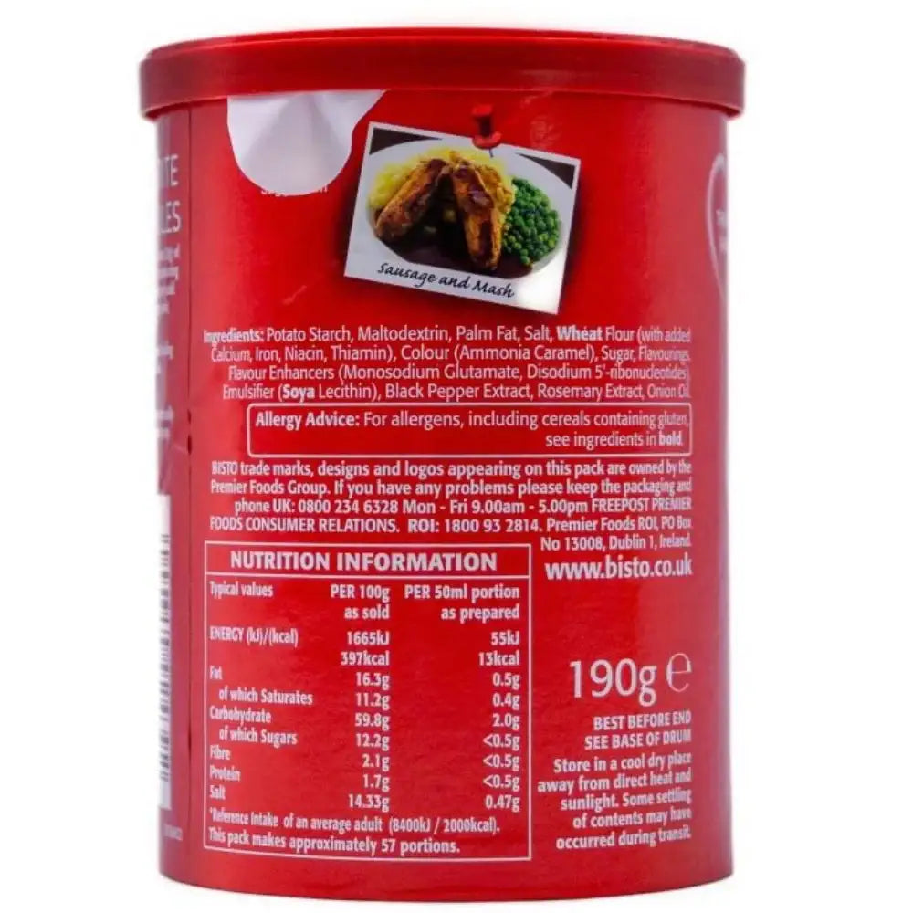 The convenient resealable pack ensures your Bisto gravy granules stay fresh and ready to use whenever the craving strikes. These granules are also suitable for vegetarians and contain no artificial colors or preservatives, making them a perfect addition to any pantry. Choose British Food Supplies for all your British food needs and experience the difference quality and authenticity make. From iconic British groceries to beloved snacks and sweets, we've got you covered. Enjoy the ease and convenience of ordering your favorite British snacks and essentials from the comfort of your home. Order your Bisto Beef Reduced Salt Gravy Granules today and taste the tradition! British Food Supplies - Your taste of Britain, delivered fresh.
