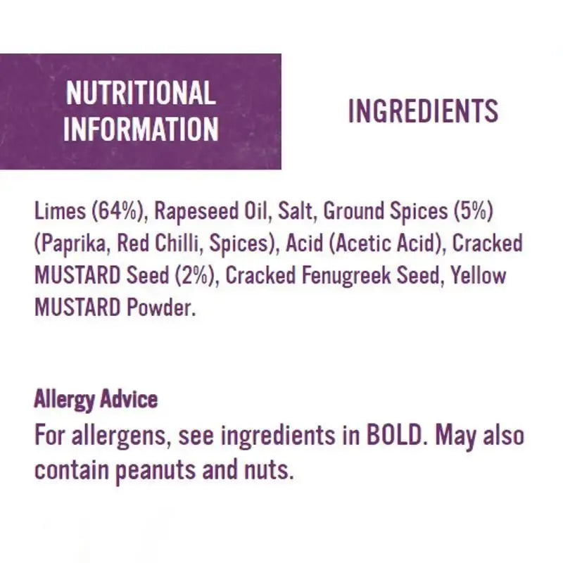 At British Food Supplies, we understand the craving for genuine UK imports. That's why we meticulously source our products directly from trusted British suppliers. This Patak's Hot Lime Pickle is no exceptionits made with hand-picked limes and a special blend of aromatic spices and fiery chillies, creating an explosion of flavour that will leave you wanting more. Perfect as a side dish, a flavour enhancer for curries, or even a surprising addition to sandwiches and salads, this pickle offers endless culinary possibilities.
