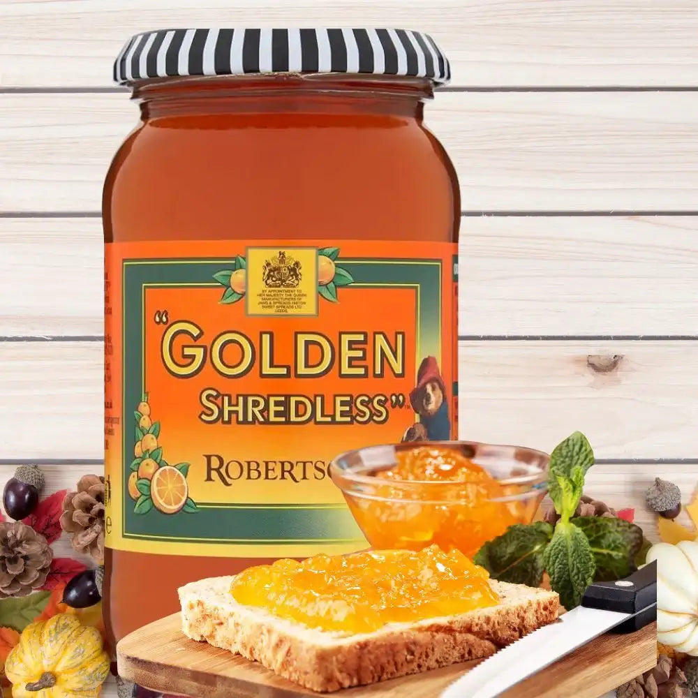 Robertson's Golden Shredless Marmalade is a classic British preserve, cherished for its smooth texture and vibrant citrus flavor. Unlike some marmalades, this one is delightfully free of peel, making it a perfect choice for those who prefer a more delicate bite. Imagine starting your day with a generous spread of this golden goodness on freshly toasted British bread. The sweet and tangy notes dance on your palate, a welcome burst of sunshine to brighten even the grayest morning.